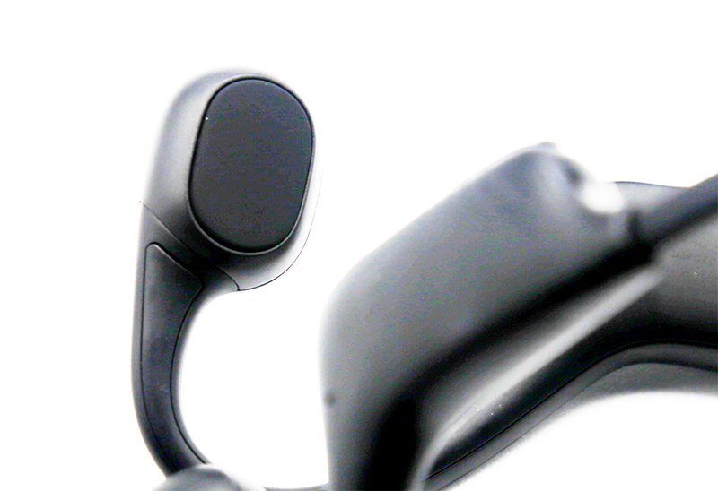 Управление здесь осуществляется двумя кнопками (у Shokz Openrun Pro их три: кроме "+" и "-" кнопка "играть/пауза" расположена на внешней поверхности левого наушника).