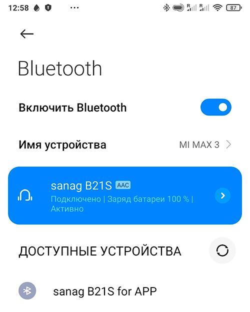 "в списке доступных для подключения устройств наушники определялись как sanag B21S for APP, и при попытке подключения выдавали сообщение, что подключать их нужно через приложение. "
