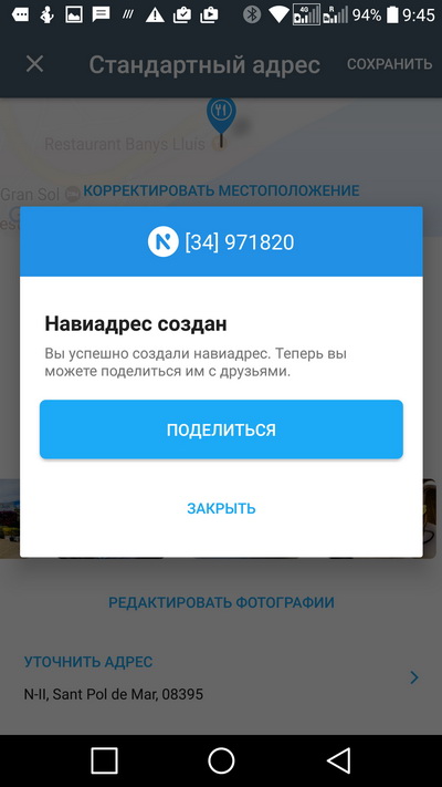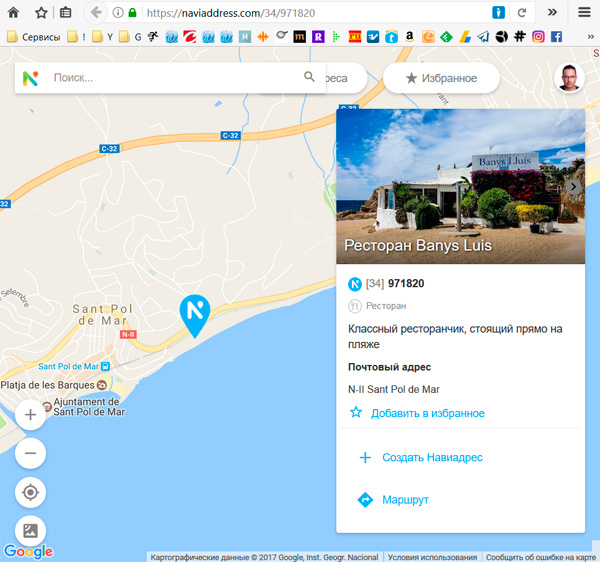 Как создается навиадрес? Предположим, есть некий ресторанчик, в котором вы собираетесь провести какое-то мероприятие, но по обычному почтовому адресу этот ресторанчик очень непросто найти без соответствующих пояснений. (В моем случае он просто стоит на пляже вдали от дороги.)