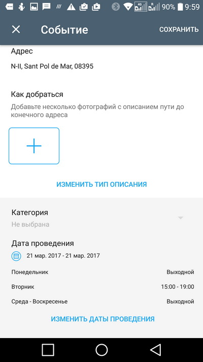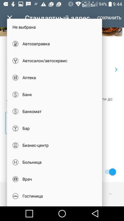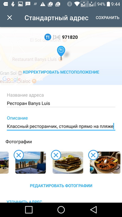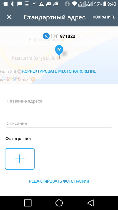 Мы выбираем обычный стандартный навиадрес. Там заполняется карточка адреса: название адреса, описание, фотографии, почтовый адрес (если есть), как добраться (можно ставить фотографии с описаниями - по шагам), категория адреса (ресторан, супермаркет и так далее). Обязательным является только название адреса.