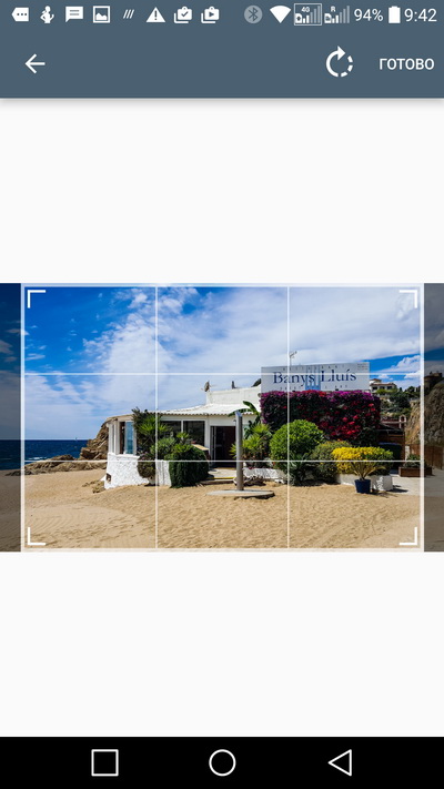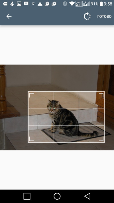 Добавляем фотографии - из камеры или галереи. Есть простенький редактор, в котором можно поворачивать изображения и кадрировать их.