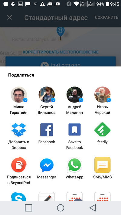 Хотя, даже внутри Гугл и Яндекс карт вряд ли это нужно, так как наличие на телефоне интернета, который можно использовать для передачи координат к картам, как бы уже скорее норма, да и в обычный смс адресная ссылка вполне поместится.