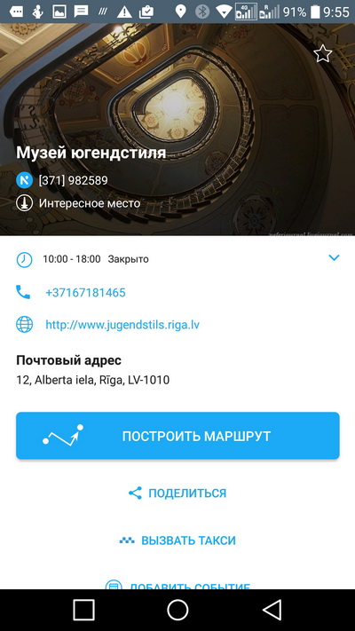 Вот как данный адрес выглядит в обычном браузере. Сам адрес, описание, прокладка маршрута и так далее.