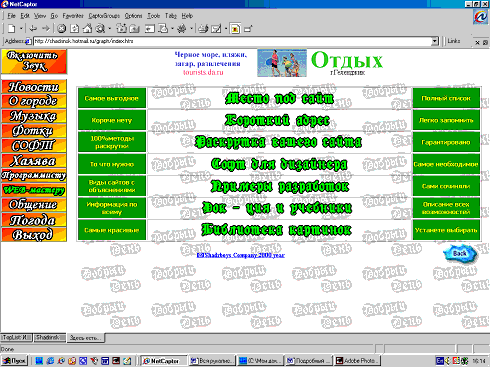 Классический пример страницы с довольно утомительным дизайном, на которой приводятся многочисленные советы по созданию сайтов в Интернете. Особенно классно смотрится раздел "Раскрутка вашего сайта" на странице, где я был первым посетителем за весь день в 6 часов вечера