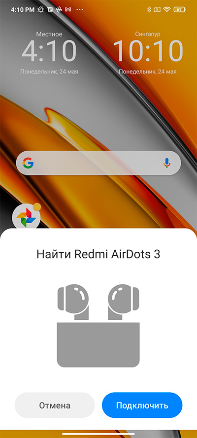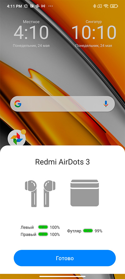 Со смартфонами Xiaomi сопряжение и подключение наушников делается очень удобно. Смартфон сам обнаруживает эти наушники и предлагает их подключить. После подключения показывается уровень заряда каждого наушника и уровень заряда кейса.