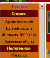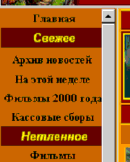 Левая картинка - часть меню при просмотре в MSIE, правая - та же часть меню при просмотре в Netscape. Видите, как буква "а" в слова года залезла под полосу прокрутки фрейма? И это, как бы сказать, самый безобидный пример. Бывает так, что меню (особенно горизонтальные) настолько залезают под полосу прокрутки, что в них вообще ничего не удается прочитать