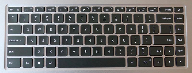Клавиатура имеет подсветку, но не снабжена датчиком освещения: подсветку нужно включать соответствующей кнопкой с помощью Fn. И у подсветки есть одно не очень приятное свойство: в целях экономии энергии через 15 секунд бездействия подсветка гаснет и включается только при нажатии какой-то клавиши. Я бы предпочел, чтобы можно было задать режим, когда подсветка сама не гаснет. Особенно это раздражает, когда подсветка гаснет при подключении к питанию - они даже не удосужились сделать два варианта реагирования. Вот Apple такие вещи делает намного удобнее, скажем честно.