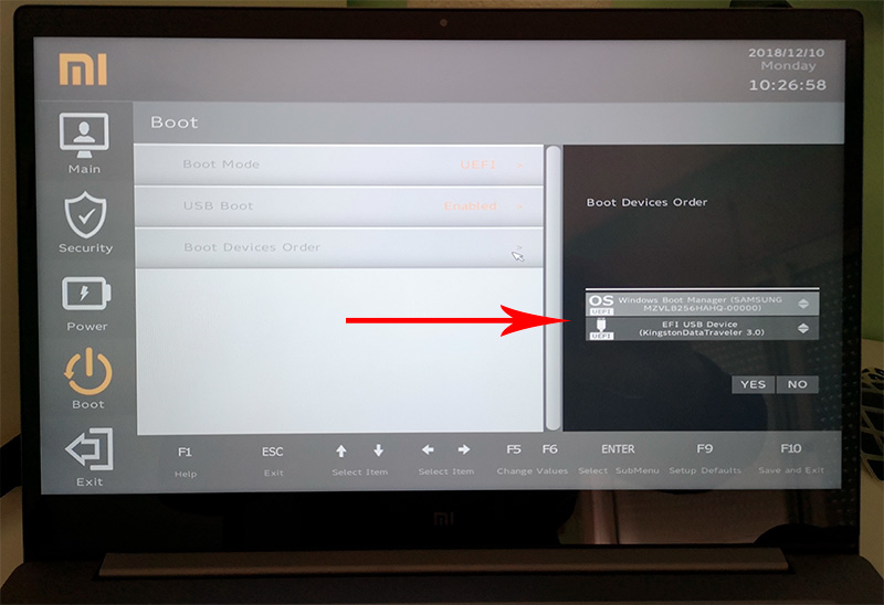 Если в Boot Device Order флешка не появляется (у меня она не сразу появилась), тогда роетесь в пунктах USB Boot и Boot Mode: я переключил Boot Mode и с флешки загрузилось. А потом и флешка появилась в Boot Device Order.
