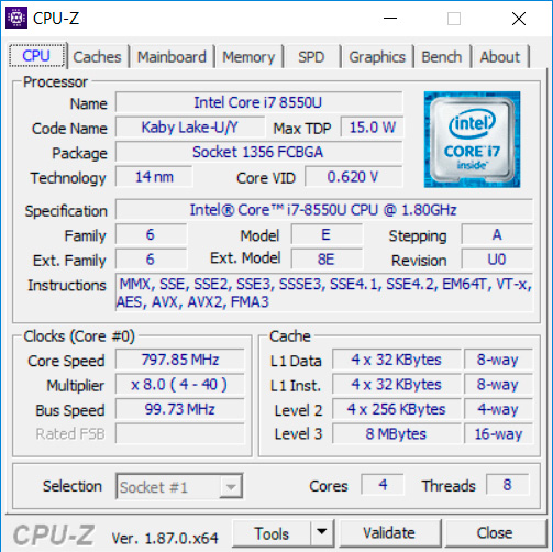 Процессор: Intel Core i7-8550U, 4-ядерный