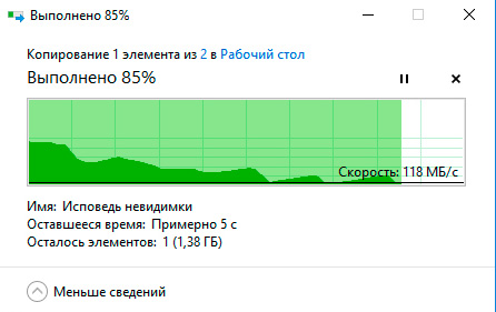 Под конец упало до 118 МБ/с, но это все равно очень быстро.