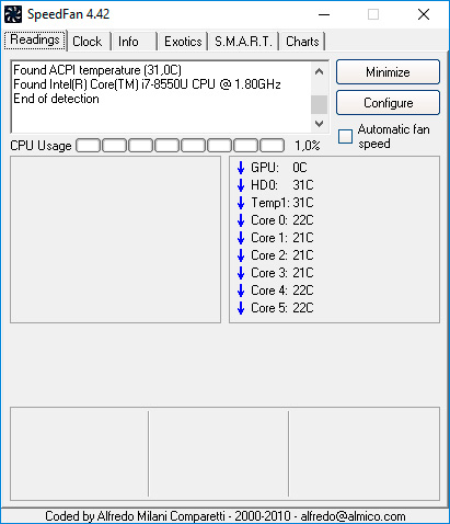 У меня типичная температура при работе с не слишком грузящими систему программами была в районе 26-32 градусов, так что кулеры не включались.
