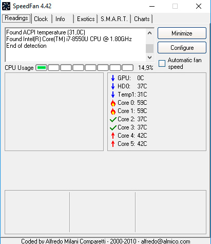 Это означает, что вентиляторы заработают при достижении температуры 42 °C, а выключатся при 38 °C.