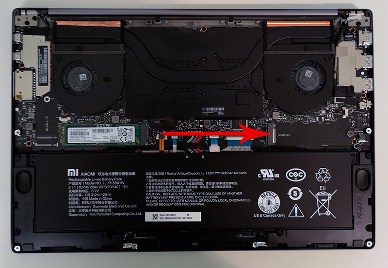 Upd: Установил второй SSD на 500 ГБ. Надо отвинтить все винты ( отвертка Xiaomi в помощь, там нужна шестиконечная головка), снять резиновую ножку, расположенную сверху по центру, отвинтить винт под ней. Снять крышку, установить диск в свободный слот M.2. Закрыть крышку и прикрутить винтики. Далее в "Управлении дисками" распределить пространство, присвоить букву диску, отформатировать. Все.