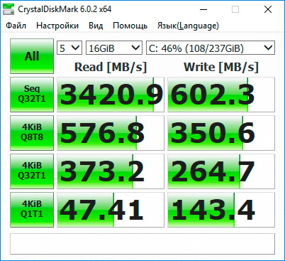 Ну что, у диска нового ноутбука почти по всем тестам более высокие показатели, а скорость последовательной записи файла сегментами в режиме мультипоточности больше аж в четыре раза!