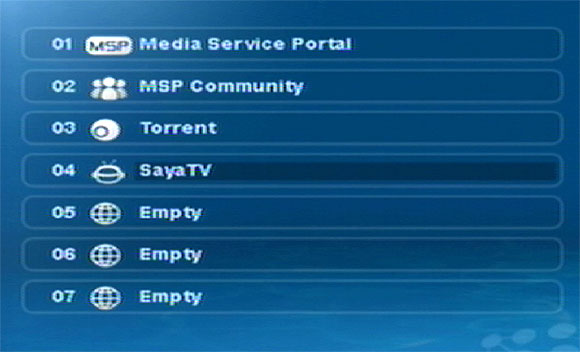 Теперь рассмотрим и другие возможности Popcorn. Когда устройство подключено к Интернету, оно предлагает воспользоваться различными веб-сервисами, а именно: подключиться к Media Service Portal, MSP Community, скачать что-нибудь из торрентов, посмотреть ролики SayaTV. На Media Service Portal - немало интересного (разумеется, для тех, кто понимает по-английски): музыка, фотографии, интернет-радиостанции, видео- и аудиоподкасты. Информация рассортирована по категориям, вы также можете просматривать/прослушивать наиболее популярные ролики.
