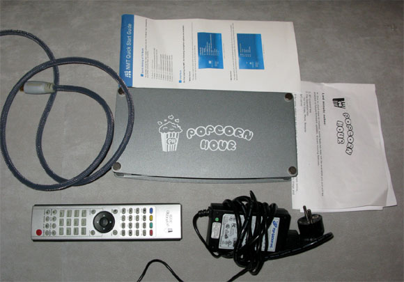 Начнем с того, что комплектация устройства - достаточно скромная. Не из серии, как любит говорить коллега Козловский, "маешь вещь", а из серии "кажется, я что-то такое купил". Небольшая коробочка Popcorn Hour, блок питания на 12 вольт, полутораметровый HDMI-кабель (вот за это - действительно большое спасибо), пульт управления, USB-slave кабель и так называемый Quick User Guide, представляющий собой листочек формата А3, сложенный в три раза. Всё. Никакие диски или книжечки с описаниями в комплект не входят - не тот стиль.