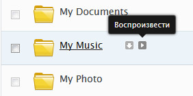 Если какая-то папка содержит аудиотреки, то при наведении на нее курсора справа появляется пиктограмма "Воспроизвести".