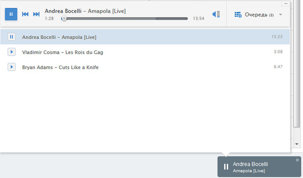 Также пиктограмма "воспроизвести" (или "добавить в очередь", если уже что-то воспроизводится) появляется при наведении курсора мыши на конкретный аудиотрек.