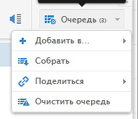 "Добавить в" - добавить треки в выбранный плей-лист. "Собрать" - собрать треки в свой аккаунт (если вы прослушиваете чужой плей-лист). "Поделиться" - поделиться плей-листом.