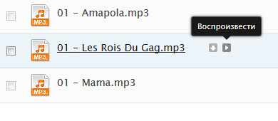 При нажатии на эту пиктограмму все находящиеся в папке треки помещаются в плей-лист плеера и он начинает воспроизведение. Чтобы открыть плеер - нужно щелкнуть по появляющейся панели справа снизу.