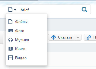 Поиск был несколько доработан. Теперь при поиске какого-то файла можно искать по различным категориям (фото, музыка, книги, видео, игры, файлы), а результат выводится в том же окне (раньше открывалось новое).