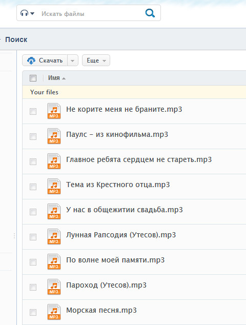 Но самое главное - вы можете задать пустую строку и выбрать, например, "Музыка", и тогда вам выведут все сохраненные в облаке аудиотреки.