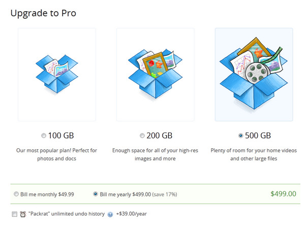 Тарифные планы Dropbox