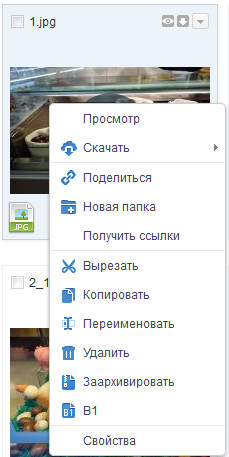 Над файлами и папками можно производить разнообразные манипуляции с помощью контекстного меню, появляющегося по правой кнопке мыши: скачивать, архивировать, вырезать, копировать, переименовывать, удалять и так далее.