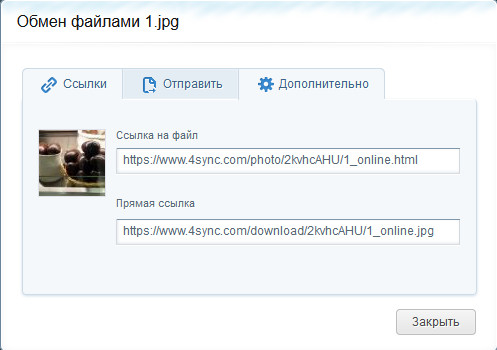 По кнопке "Поделиться" (это для любого файла) можно получить для отправки ссылку на страницу с файлом, но, что особенно важно, можно получить прямую ссылку, чтобы пользователь просто открыл файл без всякого обрамления сервиса. (Такого почти нигде нет.)