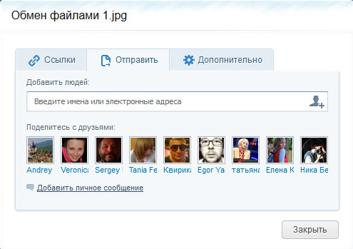 Ссылку можно отправить знакомому, и ему останется вставить ссылку в адресную строку браузера, чтобы получить доступ к соответствующей папке (если ему туда доступ открыт).