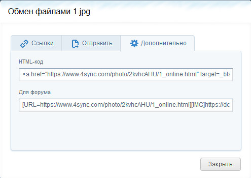 Ну и в разделе "Дополнительно" можно получить html-код для Веба и код для встраивания в сообщение на форуме.