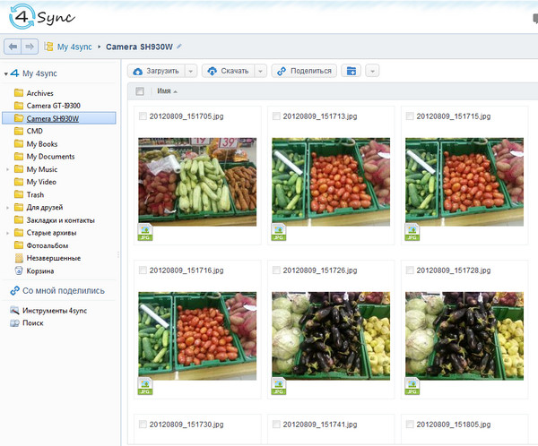 Ну и после этого - просто красота: для каждого смартфона/планшета создается своя папка, куда автоматом сливаются снятые фото и видео. Это крайне удобно! Причем, если в смартфоне фотографии камеры грохнуть, в 4Sync они, разумеется, остаются.