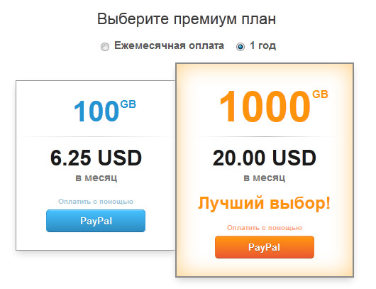 - Предоставление большого пространства (не менее терабайта) за разумные деньги.