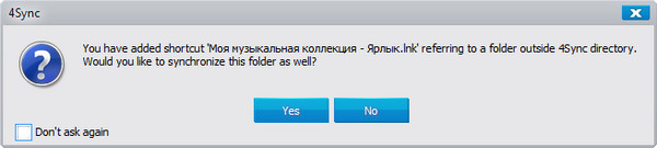 В папку 4Sync можно поместить ярлык нужной папки, и при копировании этого ярлыка задается вот такой вопрос.