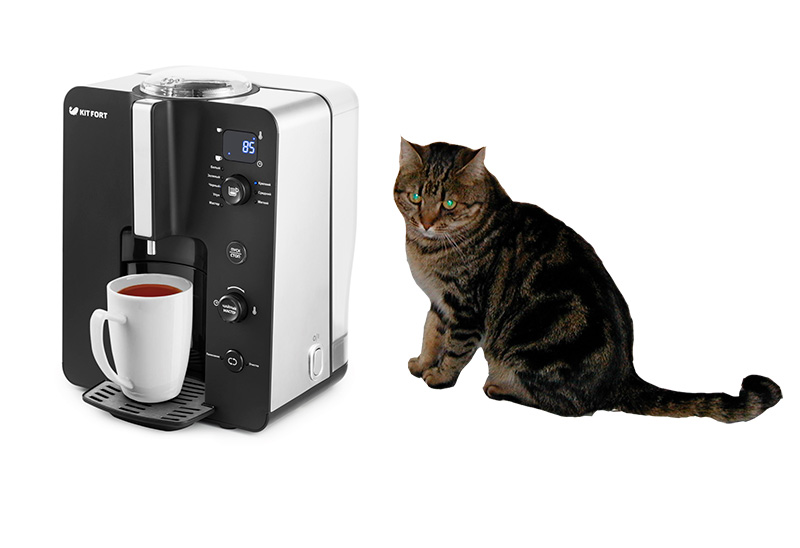 Чего мне не хватает в этом устройстве и что не понравилось? Прежде всего, конечно, хотелось бы иметь защиту от дурака - то есть от меня, который как-то раз не поставил чашку на поддон и включил приготовление чая. Заметил я это только тогда, когда горячий чай, заполнив поддон, полился по столу. Вот это было здорово, это было весело, но вот как раз хорошо бы иметь защиту против такого: какой-нибудь простейший датчик веса, который блокирует налив, если этот вес отсутствует.