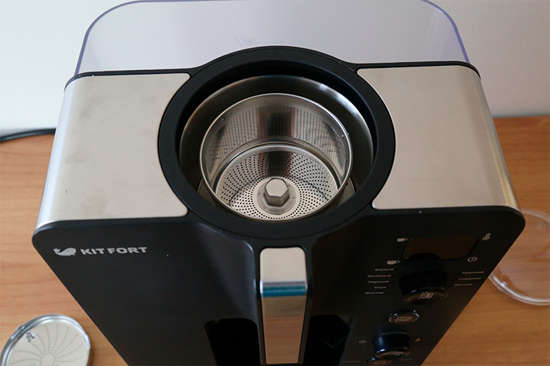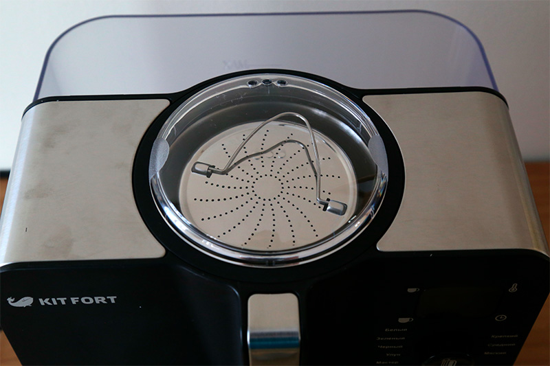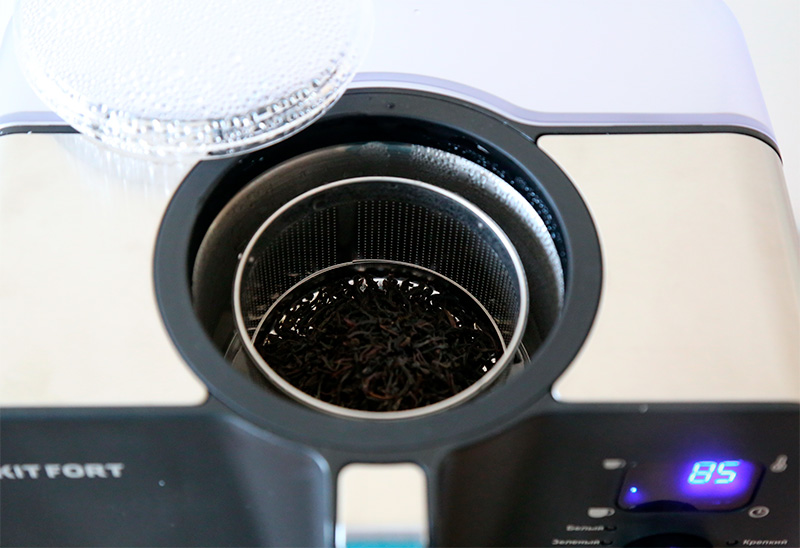 Собирается чаеварка за полминуты. Контейнер для заварки вставляется в специальный отсек, расположенный в верхней части устройства.