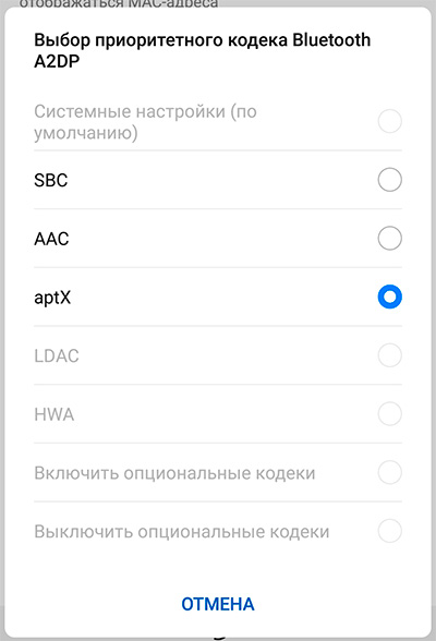 Аудиокодеки: SBC, AAC, aptX