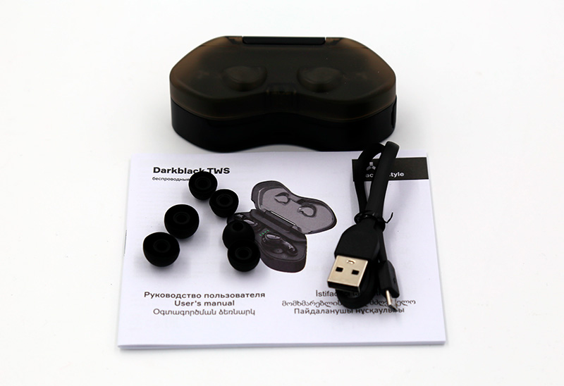 В комплекте: зарядный кейс с наушниками, кабель USB-microUSB, дополнительные три пары амбушюр разных размеров (еще одни амбушюры уже несут свою трудовую вахту в наушниках) и "пайдаланушы нұсқаулығы", что совершенно точно означает "руководство пользователя" - в этом нет никаких сомнений.