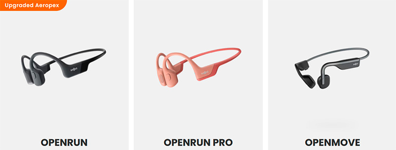 Пошел смотреть, что у них там сейчас происходит. Собственно, на замену поколению Aeropex сейчас пришли три модели. Относительно недорогие Openmove ($80), более продвинутые Openrun ($130) и топовые Openrun Pro ($180).