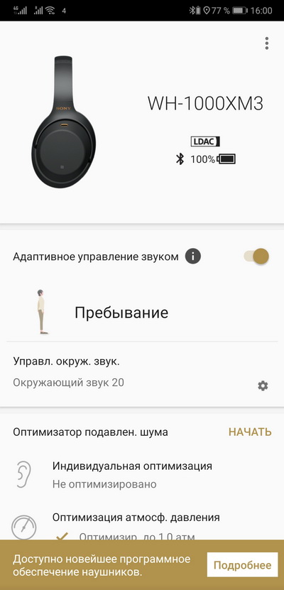 Программа называется Sony Headphones Connect. Ее наличие значительно расширяет возможности настройки наушников.