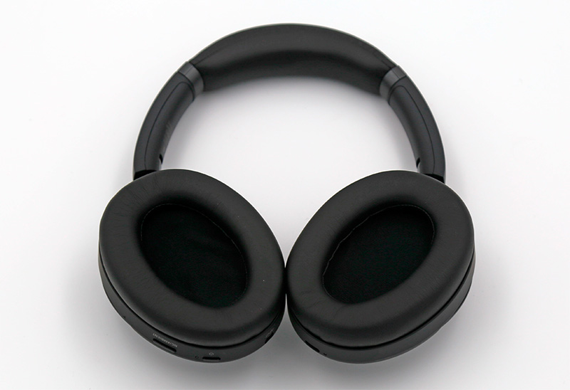 На правой чаше снизу - порт для зарядки USB-C и световой индикатор, который загорается во время подключения питания. На левой чаше снизу - вход аудиоджека, кнопка питания со световым индикатором, переключатель режимов шумоподавления. Также на переключатель режимов вместо этой функции можно навесить вызов Google Assistant или Amazon Alexa.