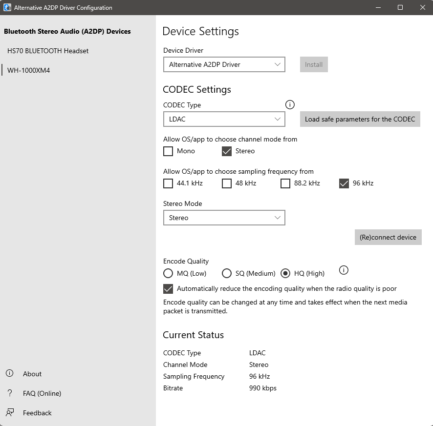 Еще у самих наушников есть опция - "приоритет на качество" или "приоритет на устойчивость соеденения" за счет качества разумеется. Если включен приоритет на устойчивость соеденения - LDAC вообще не доступен в Windows. И изменить это можно только из приложения, которого для Windows просто нет.