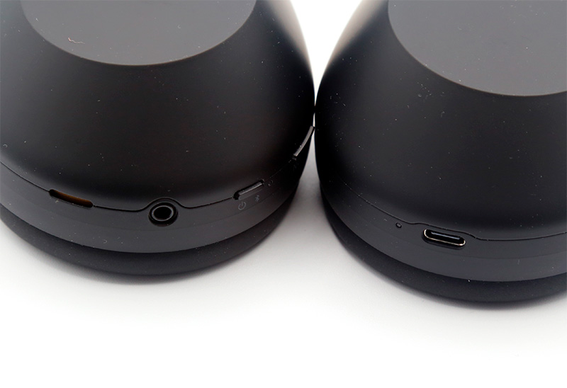 На нижней грани левой чашки наушников располагается аудиовыход для проводного подключения, кнопка питания (при длинном нажатии - перевод в режим сопряжения, о чем будет сигнализировать соответствующий светодиод, расположенный рядом), кнопка включения шумодава и переключения его режимов.