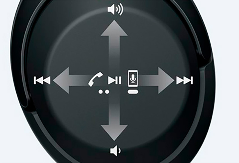 Внешняя площадка правой чашки является сенсорной панелью управления с традиционными жестами и нажатиями: вверх-вниз - громкость, влево-вправо - предыдущий/следующий треки, двойное постукивание - ответ на звонок либо положить трубку или остановить/возобновить воспроизведение, длинное нажатие - вызов голосового помощника на смартфоне.