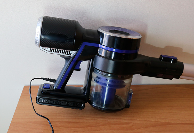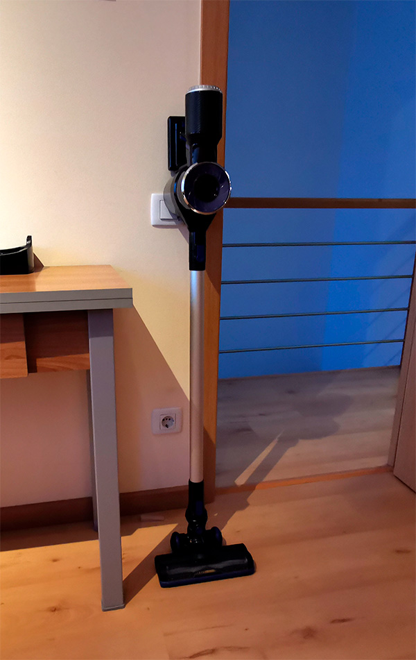 В комплекте идет настенный держатель, в который пылесос можно вставлять вертикально.