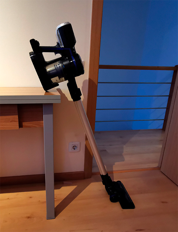 я такой покупал, как аналог "электровеника". работает, мелочевку с пола собирает (пройдешься быстренько по полу - всегда что-то есть в мусорной ёмкости). легкий. мой экземпляр вертикально стоит, но не очень надежно. видел отзывы людей, у кого вообще не захотел стоять.