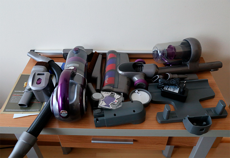 Устройство полезное, насадки разнообразные, но конструкция у него - неоднозначная. Для хранения в вертикальном виде на турбощетке требуется прикрепленная к стене подставка, что не слишком удобно. Также с такой конструкцией при работе с турбощеткой получается, что весь вес пылесоса приходится на руку, а так как он весит более трех килограммов, хрупким девушкам этот вариант может не подойти.