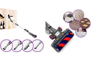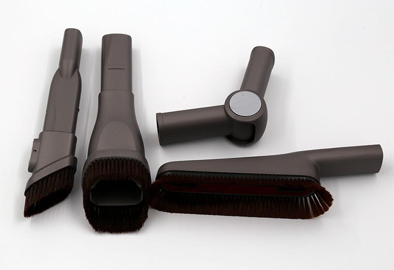 Насадки: маленькая насадка "два в одном" (с ворсом, без ворса), насадка для дивана "два в одном", мягкая щетка, соединитель. Эти насадки можно использовать напрямую с пылесосом, также можно подключать через удлинительный шланг или удлинительную трубку, к которой крепится турбощетка: с удлинительной трубкой пылесосом можно почистить труднодоступные места.