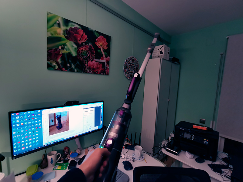 Он уже прописался в моем кабинете: турбощетка нужна через день, да и ручной пылесос требуется не реже пары раз в неделю, так что теперь я за ним могу не бегать вниз в кладовку.