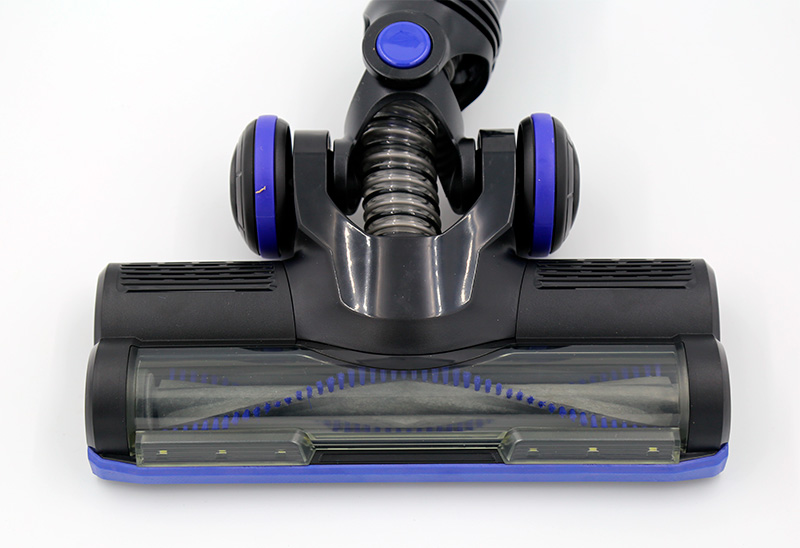 Турбощетка. Ее механизм крепления поворачивается на 90 градусов по вертикали и почти на 180 градусов по горизонтали - для удобства уборки.  Кстати, в переднюю часть щетки встроены шесть светодиодов подсветки - удобная штука, кстати, первый раз такое вижу у пылесоса.